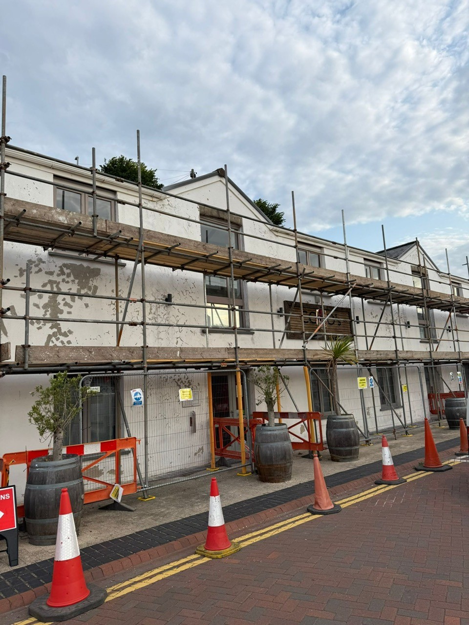 Erection of scaffolding, anti-fungal wash down, render repairs and redecoration to lime render using mineral based paints.